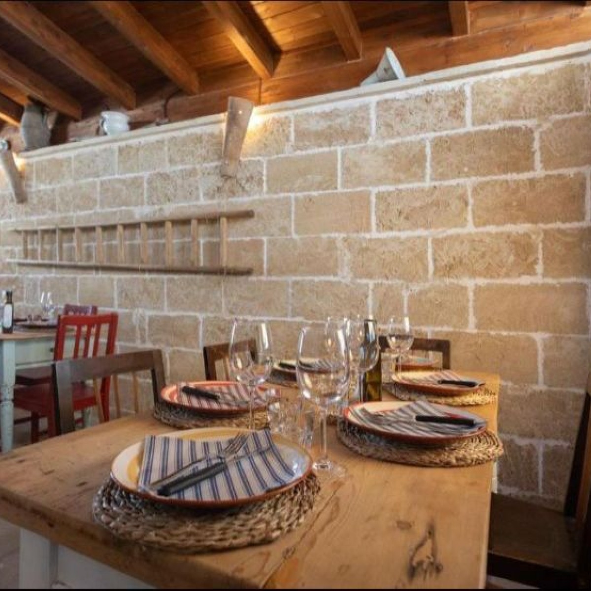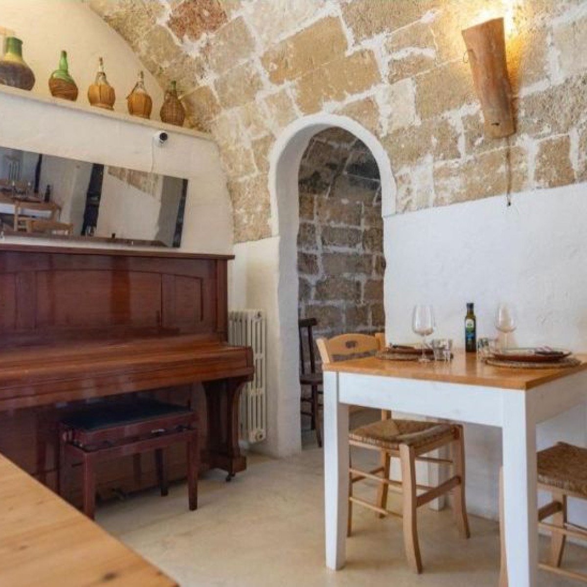 Ristorante in masseria ad Alezio, immerso nelle fantastiche campagne salentine. Cucina tipica salentina, con un pizzico di rivisitazione per unire i sapori di un tempo con la fantasia dei nuovi. All’interno ci sono 2 camere da letto matrimoniali, dove alloggiare e godersi a pieno la natura. Questa struttura sormonta un frantoio ipogeo del XIV secolo da poter visitare e conoscere la storia della nostra zona.
