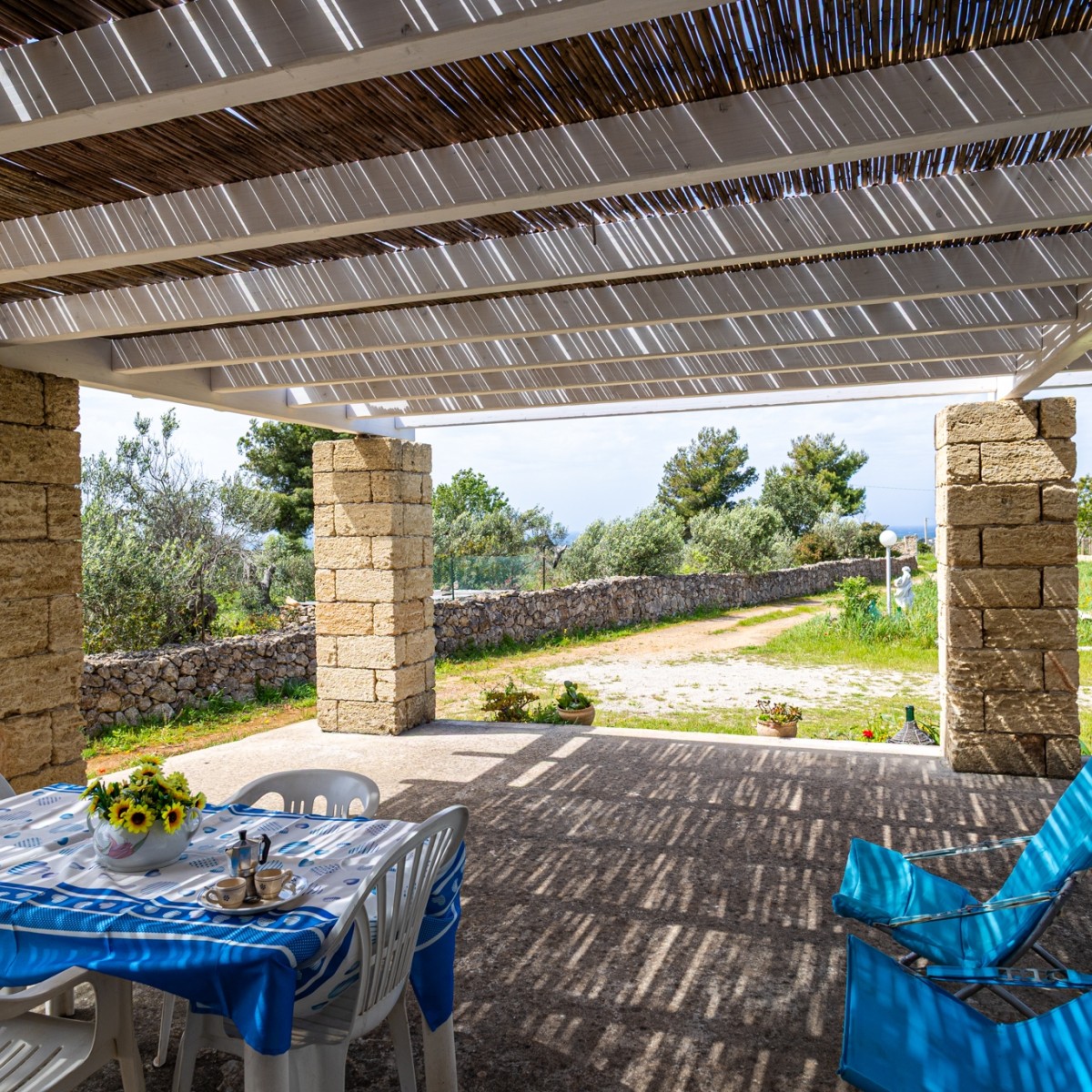 Meravigliosa Villetta immersa nella campagna salentina. Un ampio giardino circonda la villetta composta da 2 camere da letto, bagno, salotto, angolo cottura e ripostiglio. La bellissima veranda permette di godersi il panorama della macchia mediterranea e del mare cristallino che bagna le coste di Torre Suda.