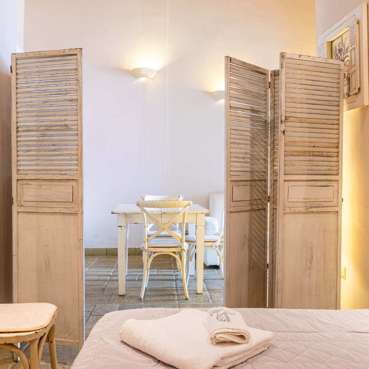 Le nostre camere presentano le principali caratteristiche delle abitazioni tipiche del centro storico di molti dei paesi salentini. Volte a stella e suggestivi lucernari lasciano immaginare ai nostri ospiti la vita autentica della gente che popolava e popola il cuore delle città e consentono di godere di un’ombra fresca e piacevole al ritorno dal mare e al riparo dal caldo sole estivo. Il bed & breakfast è dotato di unità climatizzate con armadio, cassaforte, TV a schermo piatto, terrazza e bagno privato con bidet. Alcune unità sono dotate di balcone e/o patio con vista sul mare e mobili da giardino. Nel bed and breakfast ogni unità dispone di biancheria da letto e da bagno.
