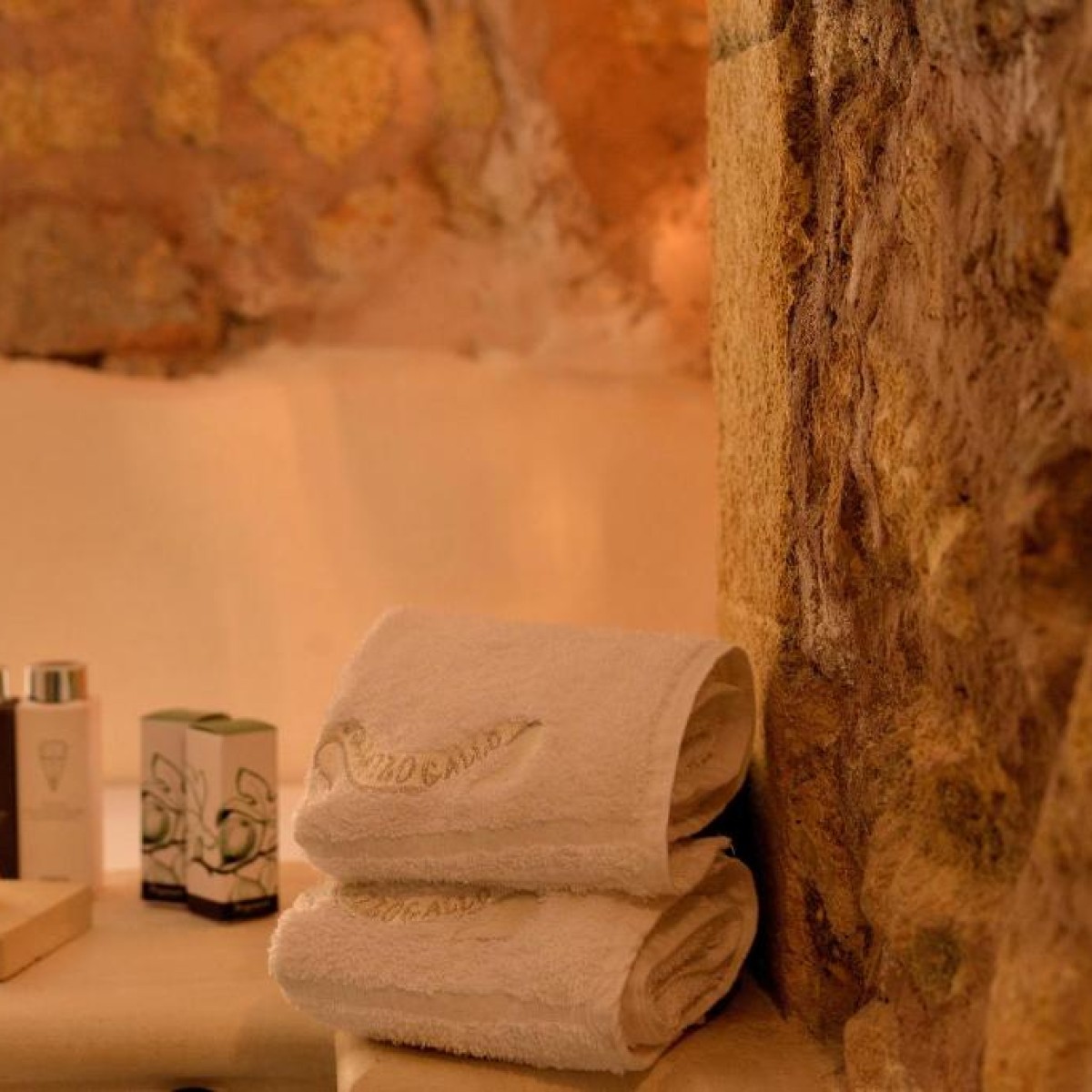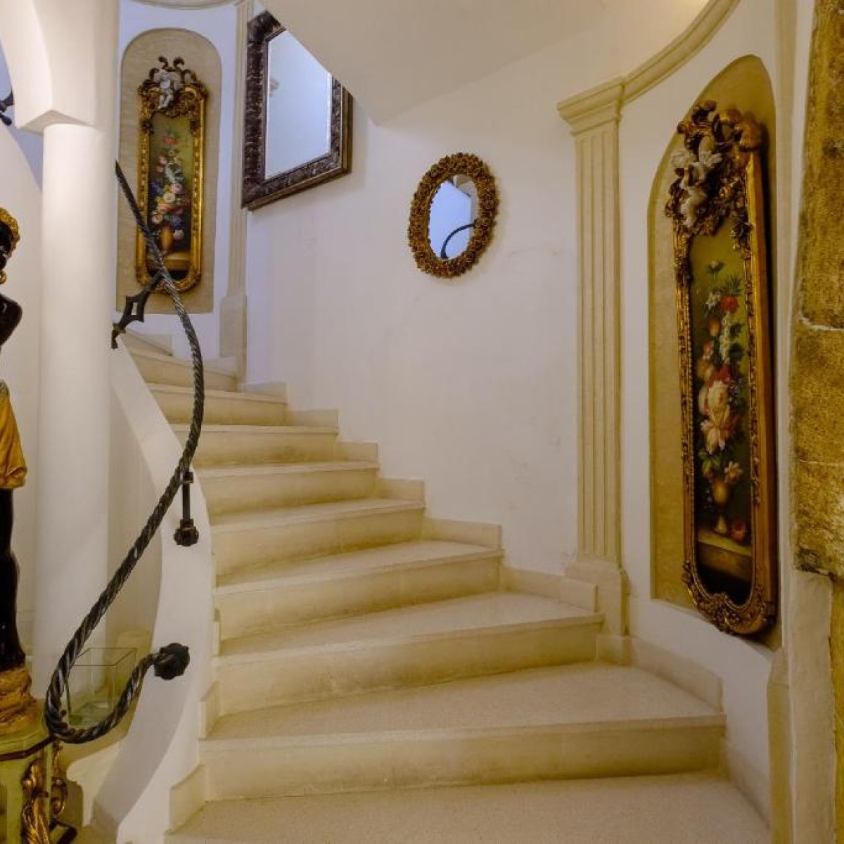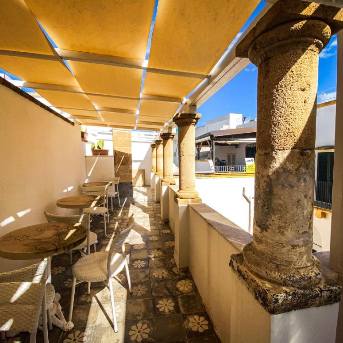 Tracce dei primi insediamenti sono ancora visibili nella suite Aragonese, dove le murature originarie sono state oggetto di un attento e accurato restauro dando nuovo lustro al vecchio paramento murario attraverso un uso sapiente di luci e pareti in cristallo. Ogni suite cosi come tutto il palazzo, è fortemente caratterizzato dalla presenza di riferimenti alla pietra leccese, alla cultura ed allo stile barocco salentino, con mobili e particolari unici dell’epoca. Infine, nel piano inferiore della struttura vi è un antico frantoio oleario che rende la storia del Palazzo ancora più affascinante.